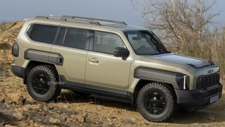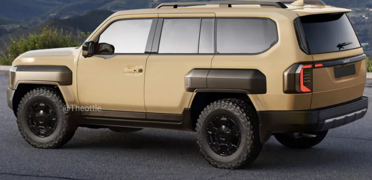 최신 토요타 랜드크루저를 렌더링의 기반으로 사용했습니다. 후미는 미등의 현대적인 LED 그래픽 덕분에 기아차로 쉽게 알아볼 수 있습니다. 흥미로운 점은 리어 펜더에 멋지게 통합된 리어 도어 핸들입니다.