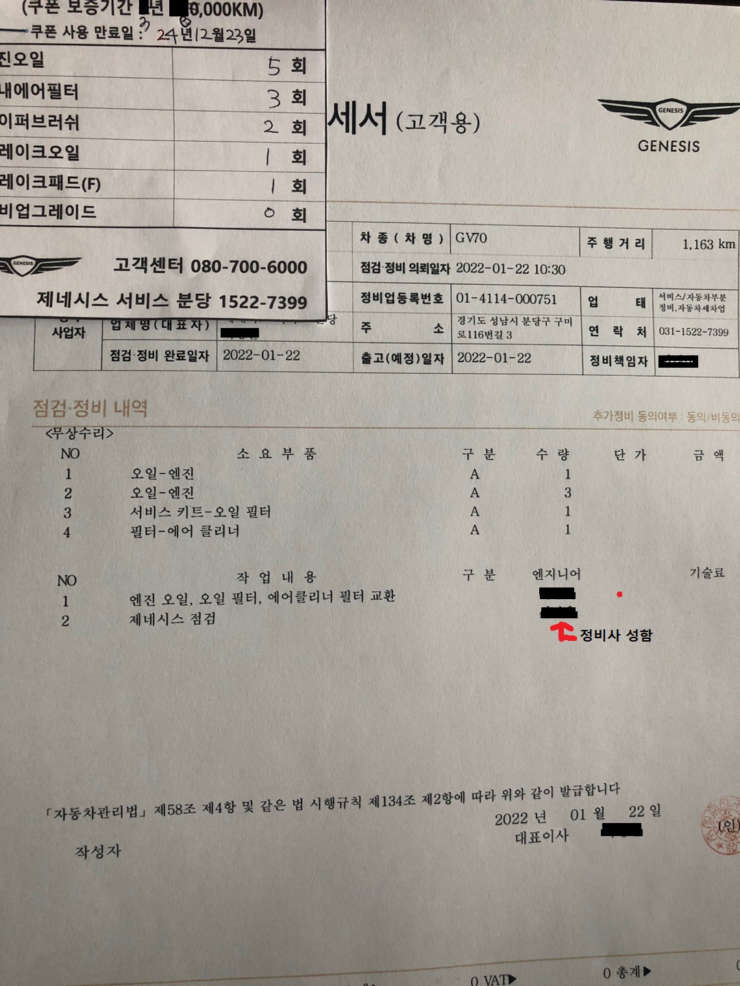 내돈내산, GV70 제네시스 분당 서비스센터 엔진오일 교환 후기
