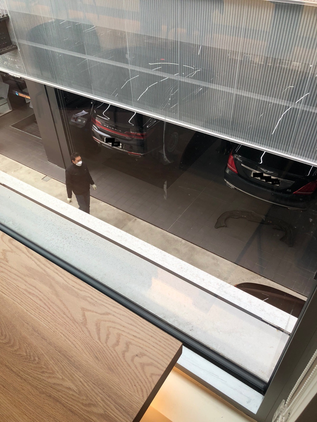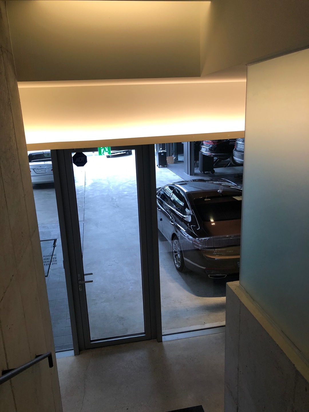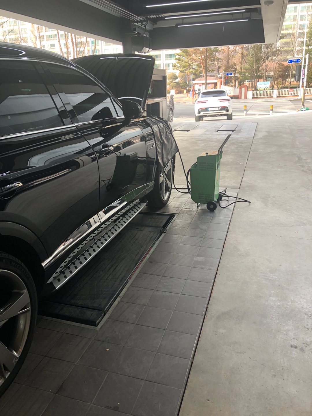2층에선 리프트에 올라간 내 차량을 볼 수 있었습니다. 이 사진찍을 때, 저는 대기차량이라 아직 올라간 모습을 보진 못했고요. 앞의 차들이 너무 밀려있어서 집에 좀 다녀왔습니다.