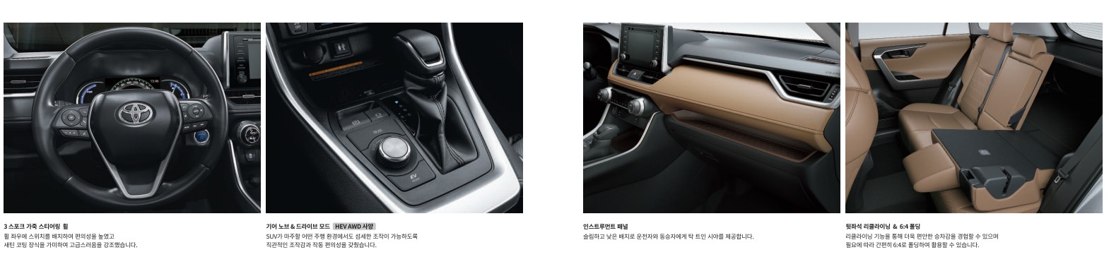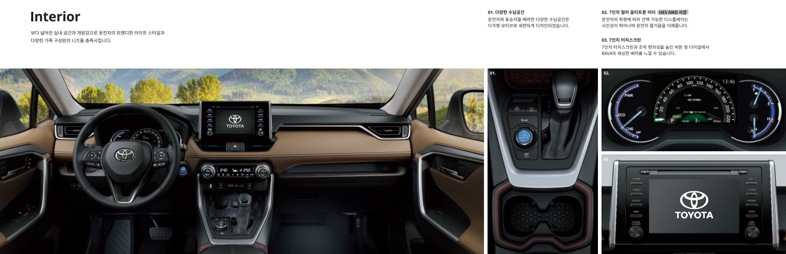 현재 2018년부터 5세대를 생산중인 RAV4는 2.5L 가솔린 엔진과 e-CVT미션이 탑재됩니다.