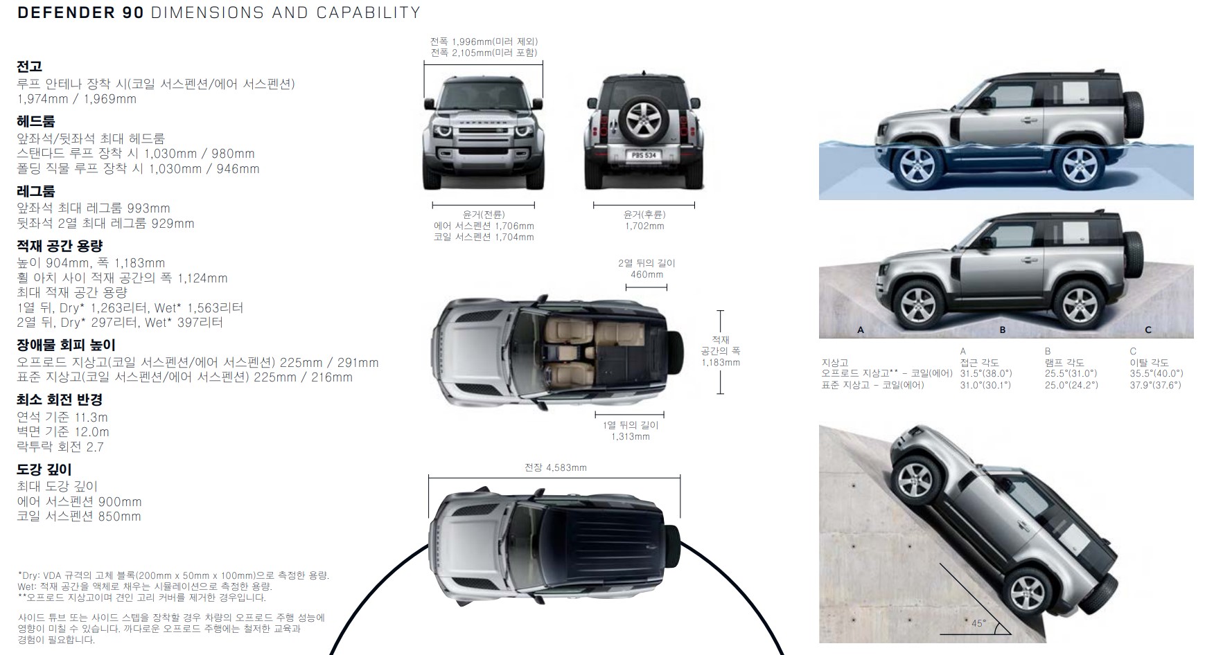 ▶ 랜드로버 디펜더 DEFENDER 2세대 제원