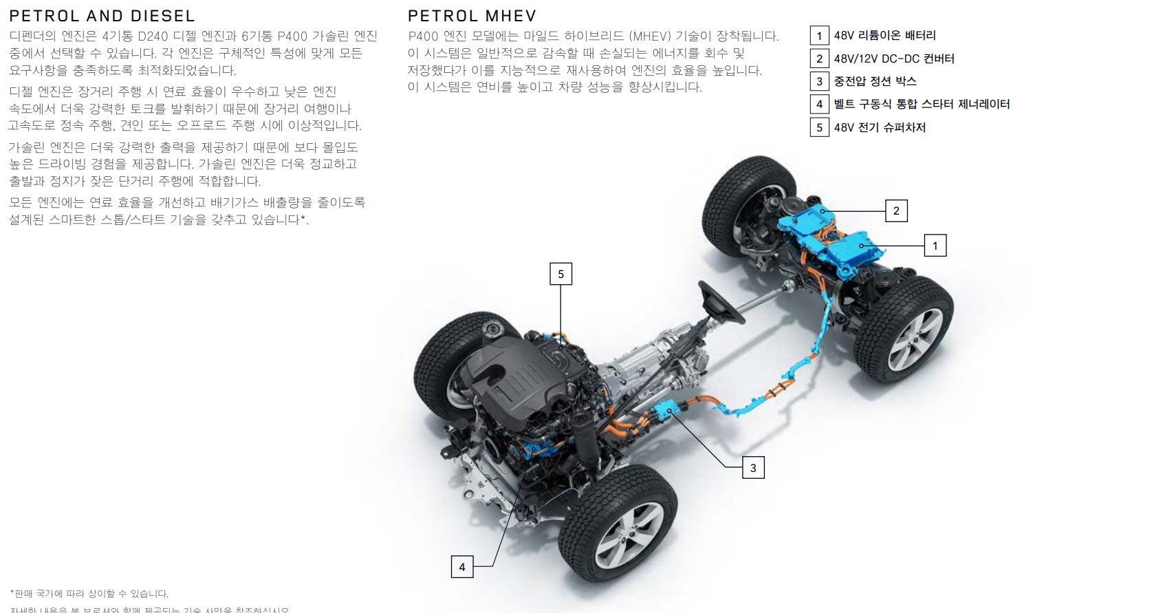 DEFENDER X 만 가솔린(마일드하이브리드-MHEV) 엔진입니다.