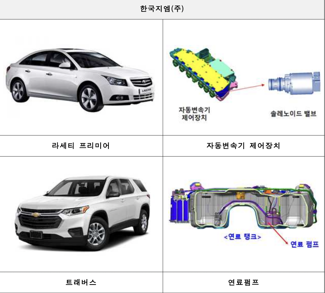 - 라세티(프리미어/크루즈), 토스카, 알페온, 올란도, 캡티바