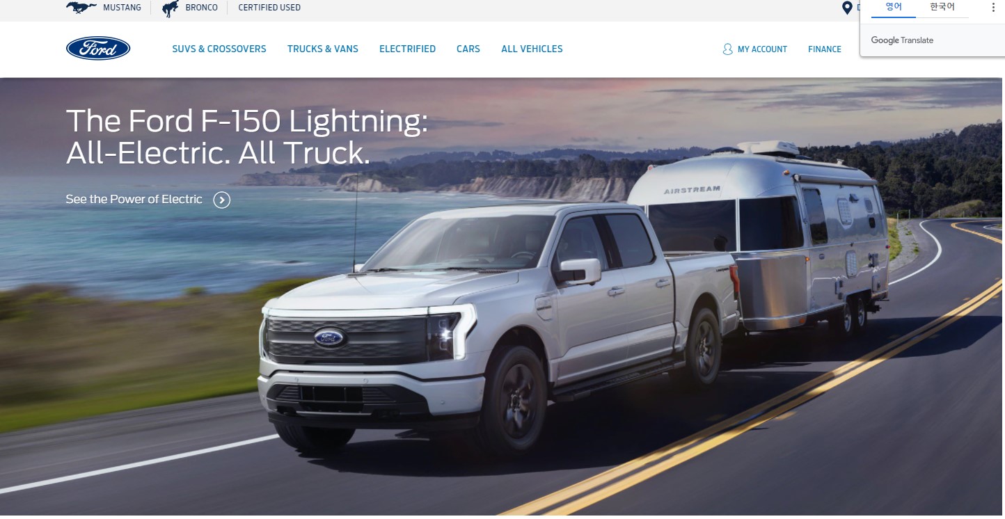 포드(Ford) 미국 사이트에는 F-150 라이트닝이 벌써부터 메인화면에 나오고 있고요.