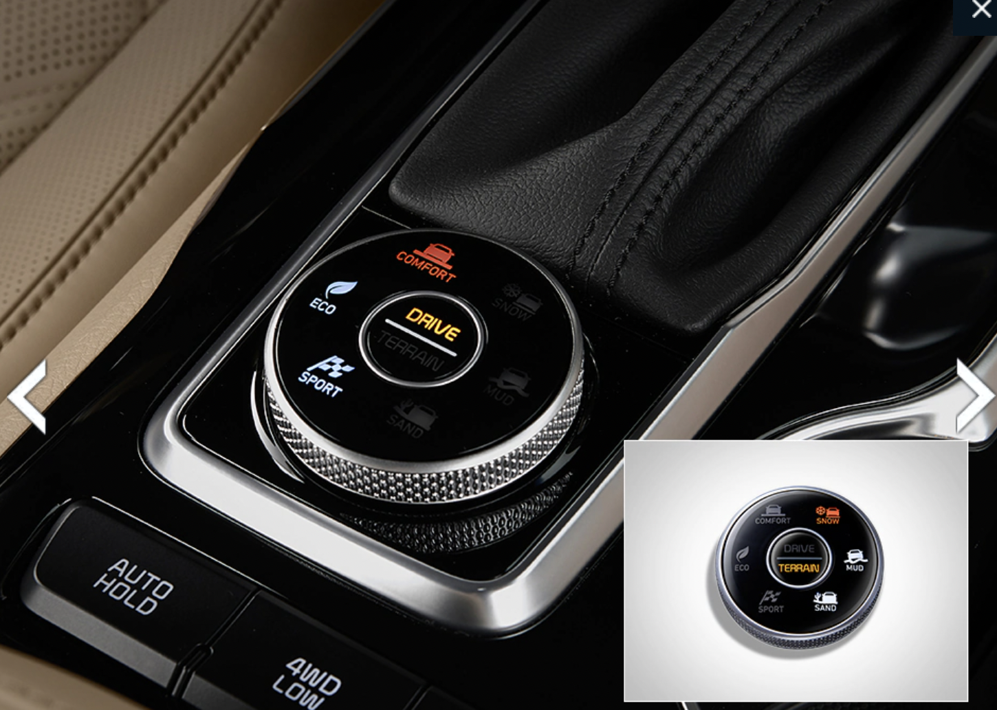 4WD가 장착되어 드라이브모드를 변경할 수 있습니다. 컴포트, 에코, 스포츠를 기본으로 터레인모드에는 진흙, 모래, 눈 등의 거친 주행환경도 주행보조 역할을 해줄 수 있게 합니다.