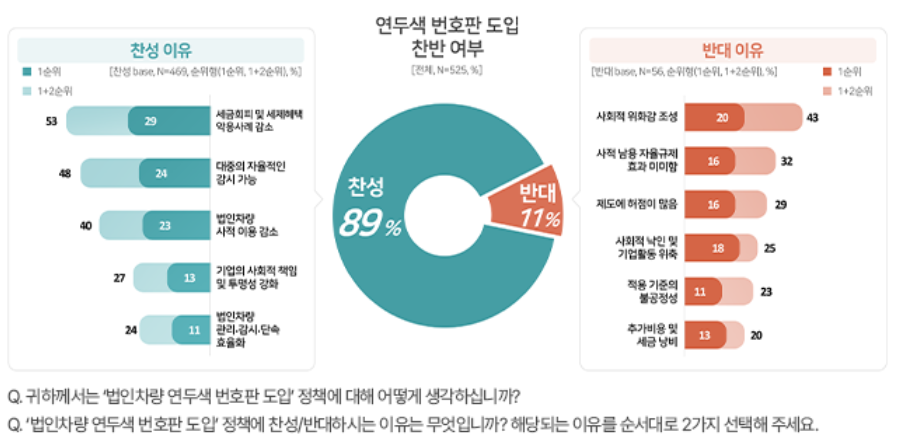 법인차 연두색 번호판, 90%는 더 강화 원한다 vs 폐지해라