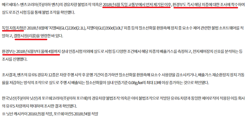 5월 6일 보도된 자료에 의하면 메르세데스-벤츠 코리아가 2012년부터 2018년까지 판매한 여러 차종들에 대하여 배출가스 저감장치를 불법 조작한 사실이 적발되었다고 뉴스가 떴습니다.