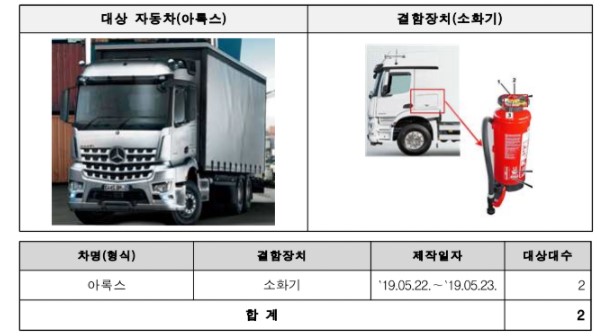 벤츠 스프린터, 다임러, 자일대우 가와사키 리콜 실시 총 1651대