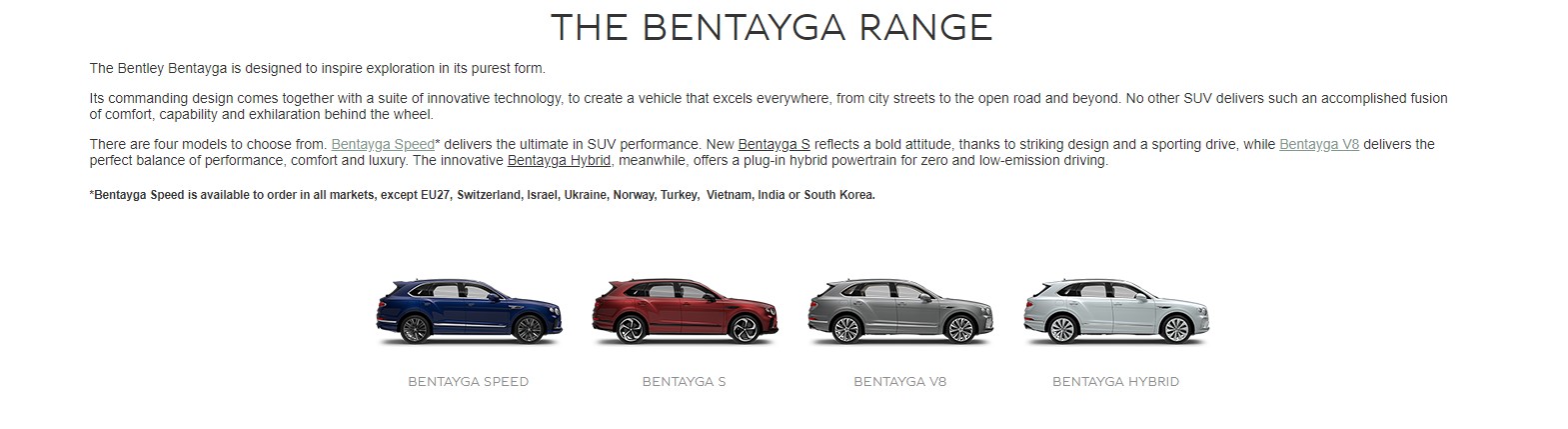 벤테이가 스피드, 벤테이가 S, 벤테이가 하이브리드는 미출시