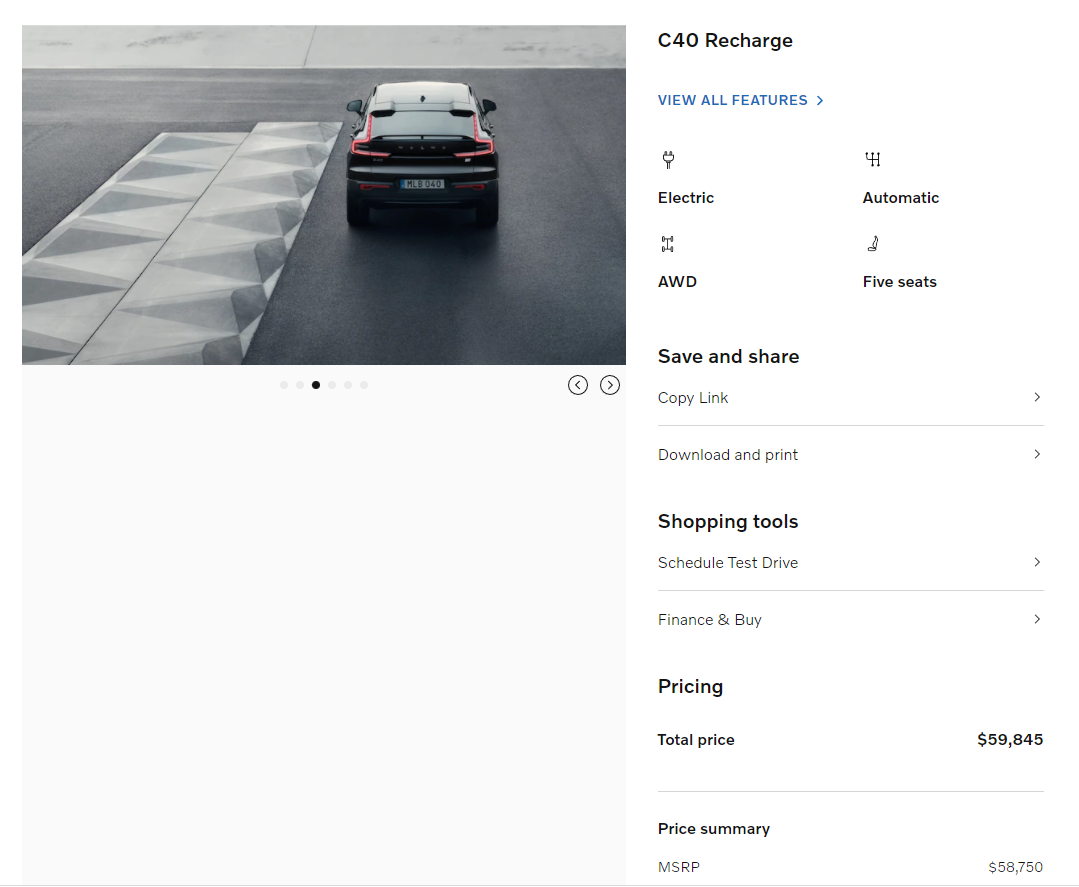 ▶ 볼보(volvo) C40 리차지 (전기차) 가격