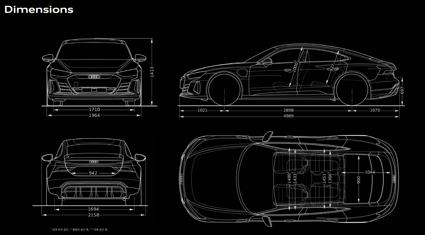 아우디의 준대형 4도어 쿠페형 스포츠 세단이며 전기자동차입니다. 보자마자 포르쉐의 타이칸(전기차)을 겨냥하고 나온것으로 생각했는데, 역시나 플랫폼도 포르쉐의 타이칸과 동일하고 모터, 배터리 등 핵심부품들도 공유합니다.