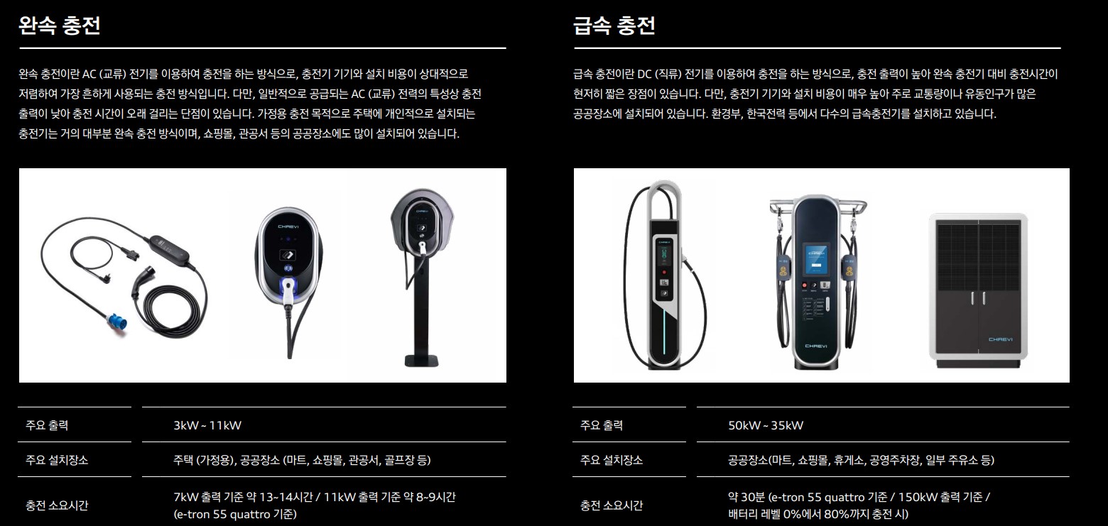 그래서 타이칸처럼 e-tron도 2단기어를 장착하고 있습니다. 보통 전기차는 엑셀을 강하게 밟으면 전류를 많이 흘려보내 바퀴를 빨리 굴러가게 하는 정도지만, 타이칸처럼 2단기어까지 장착이 되어 1단은 빠른 가속과 힘을, 2단은 효율을 높이는 전력을 사용하여 주행하게 됩니다.