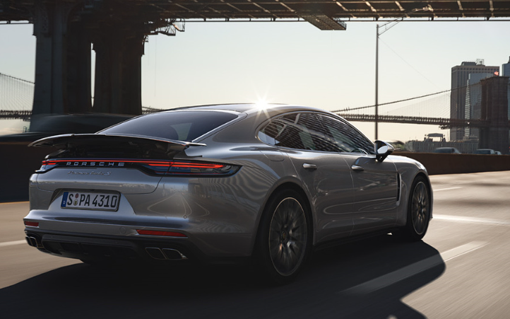 후면은 프레임이 없는 리어 윈도우, 새롭게 디자인된 라이트 바, 약간 커진 검은색 플라스틱이 911을 연상시킵니다. '파나메라(Panamera)'의 레터링은 들어가지 않습니다.