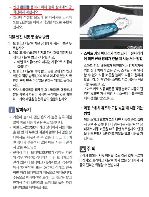 주차장에서 괜히 예열한다고 5분정도 공회전을 하면서, 연료를 낭비하는 일이 없으시길 바랍니다