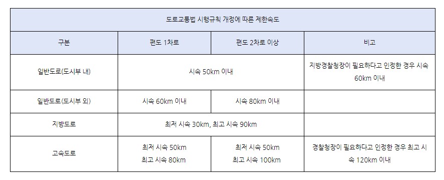 일반속도는 시속 50km(소통상 필요한 경우 60km적용 가능)