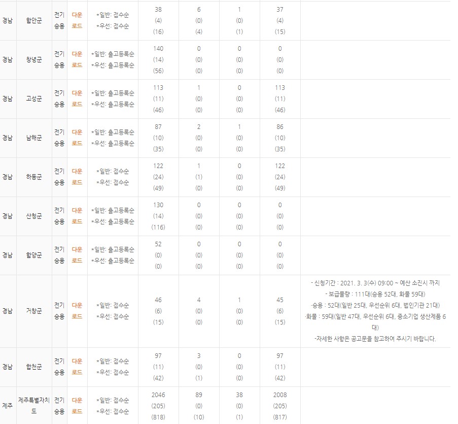 전체 보조금 대수와 우선순위, 법인기관(회사겠죠?) 그리고 일반인 대상