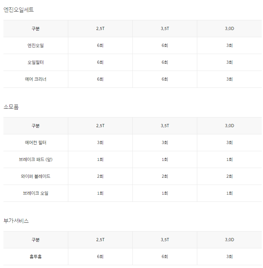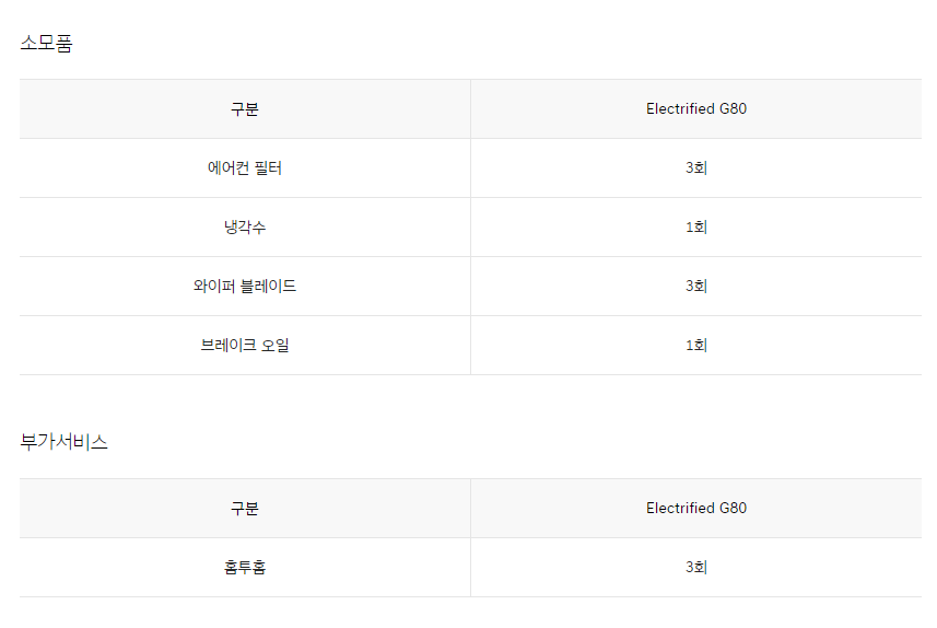 제네시스 무상보증 무상 소모품교환 모델별로 정리(21.08.02 기준)