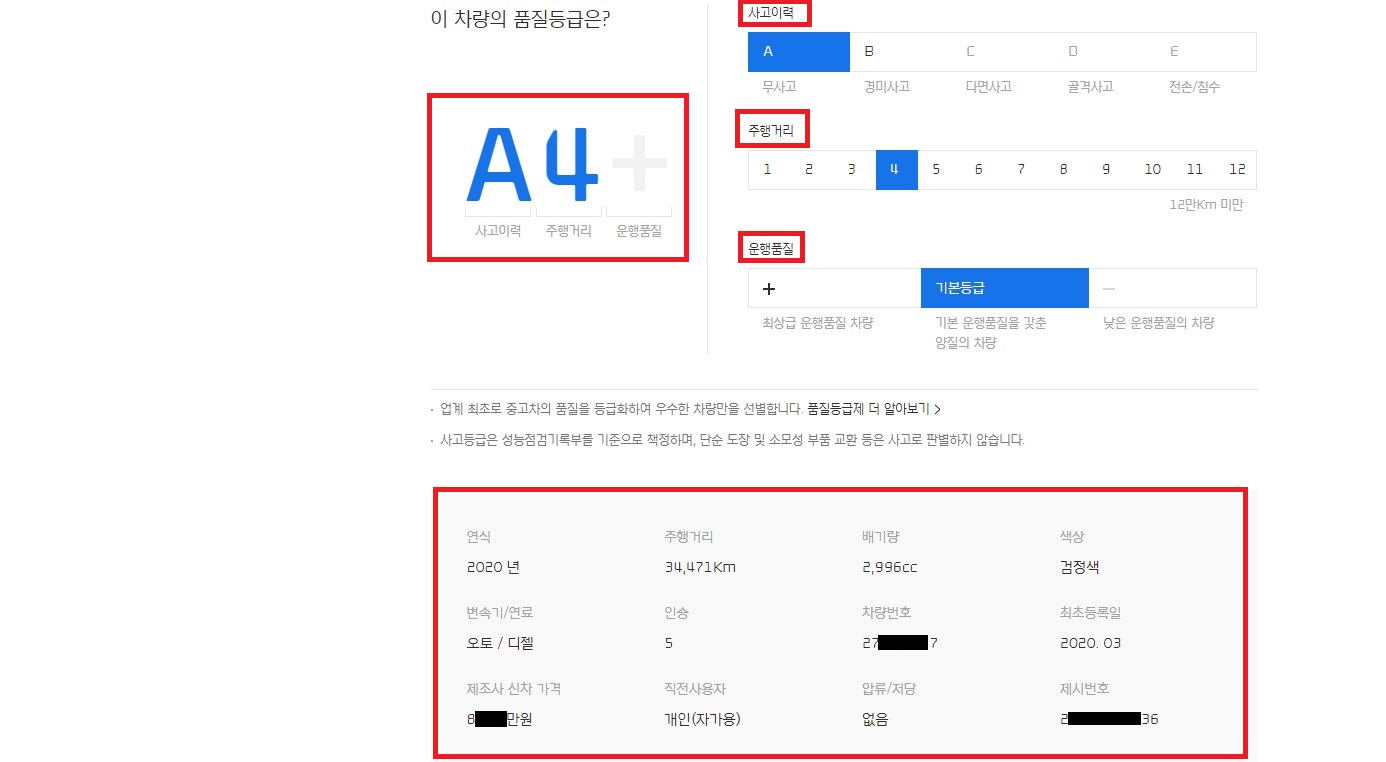 차량 모델 이름옆에 A4 라고 있는것은 현대캐피탈이 인증중고차의 등급을 정할 때 사용하는 레벨링 정도 됩니다.