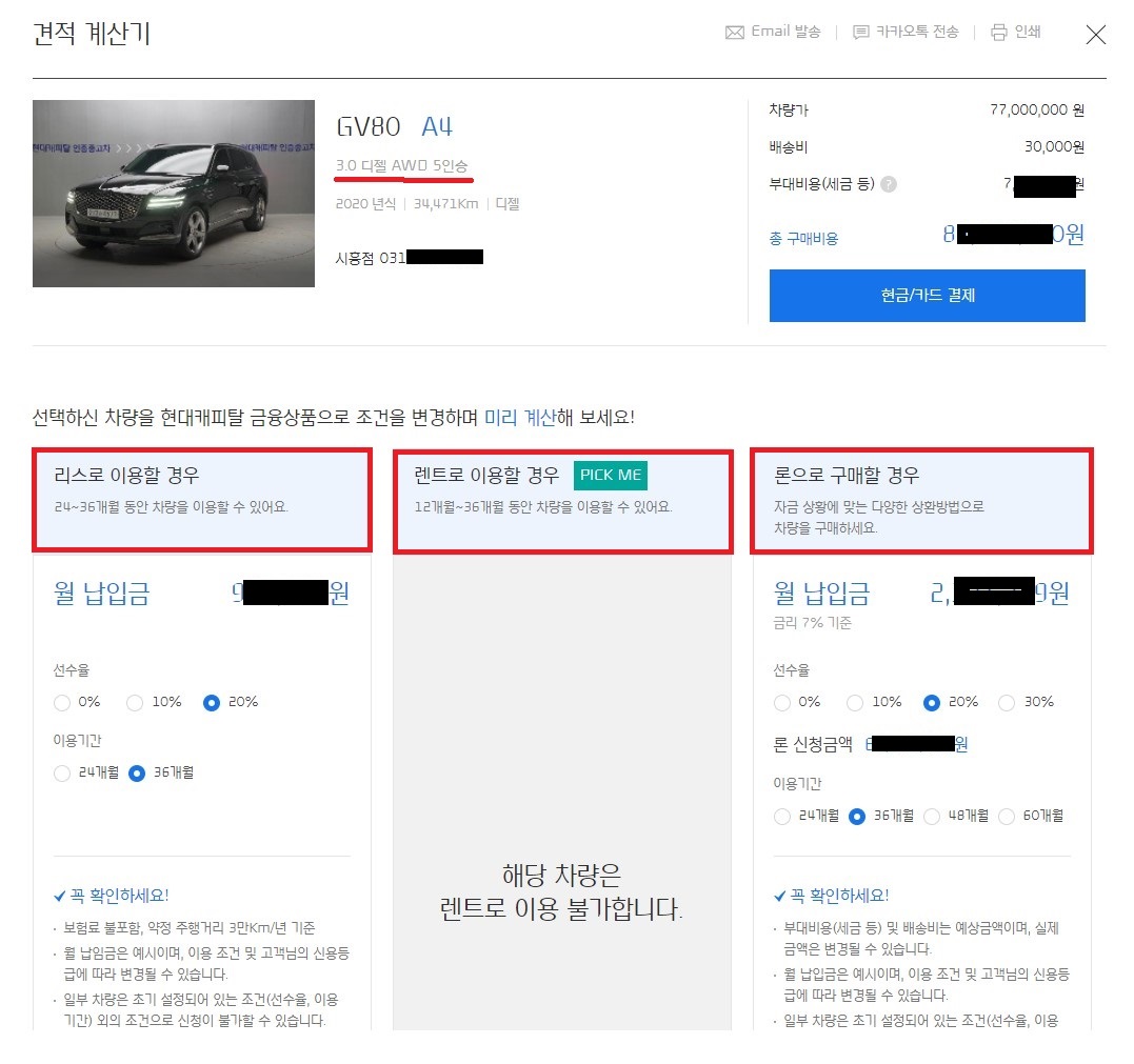 현대의 금융상품인 현대캐피탈을 이용하는 건데요.