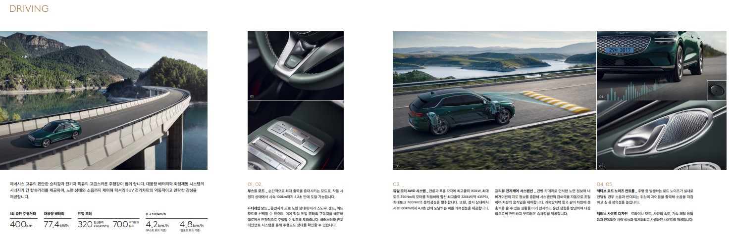 근데 터레인 모드는 내연기관의 GV70도 AWD모델에선 가지고 있는 기능이라 전기차 최초로 사용했다는 것에만 의미를 두면 될것 같네요.