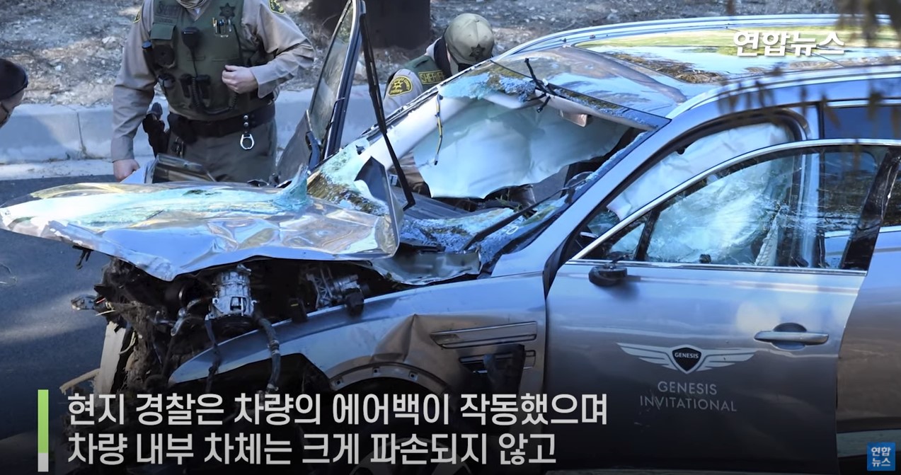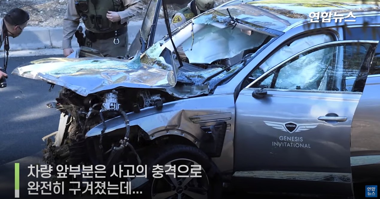 해당 차량은 현대자동차의 프리미엄 브랜드 제네시스 GV80으로 알려졌습니다. 앞서 열린 PGA(미국프로골프협회) 투어 토너먼트 대회 '2021 제네시스 인비테이셔널' 이후 현대차가 LA에 머무는 우즈에게 제공한 것으로 알려졌습니다. 밑의 사진에서도 도어측면에 '제네시스 인비테이셔널'이라는 로고를 발견할 수 있어요. 당시 촬영을 위해 장소로 이동중에 일어난 사고라고 합니다. 음주나 약물같은 건 조사를 해봐야 알겠지만, 충돌에 의한 사고는 아니라고 하네요.