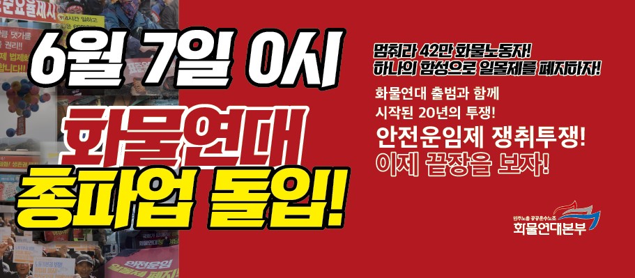 국토교통부에서 제시한 대로 국민의 힘, 화주단체를 포함해 안전운임제를 추진하고 품목 확대에 적극적으로 논의하겠다고 했지만, 최종 타결 직전 돌연 잠정 합의를 번복했다고 합니다.