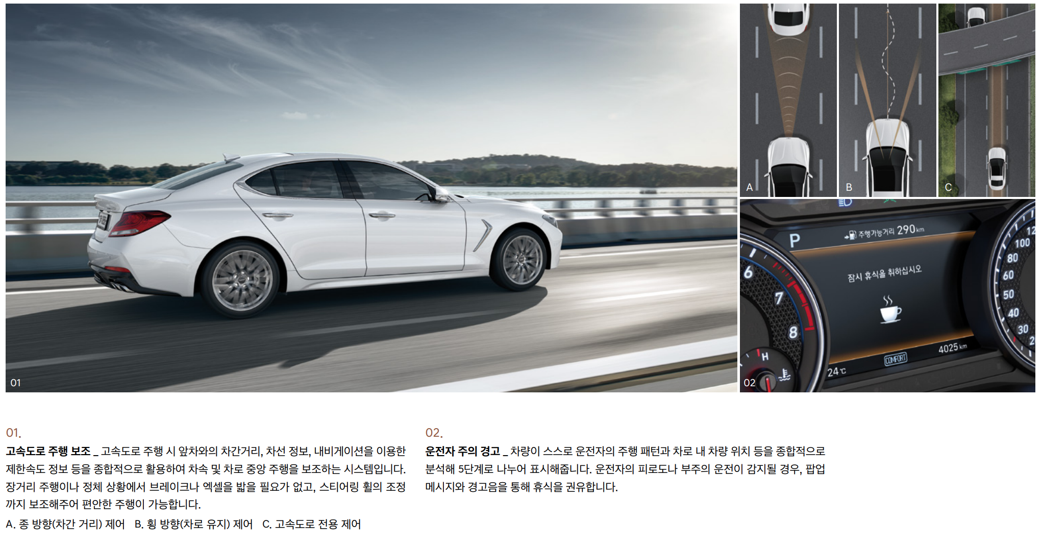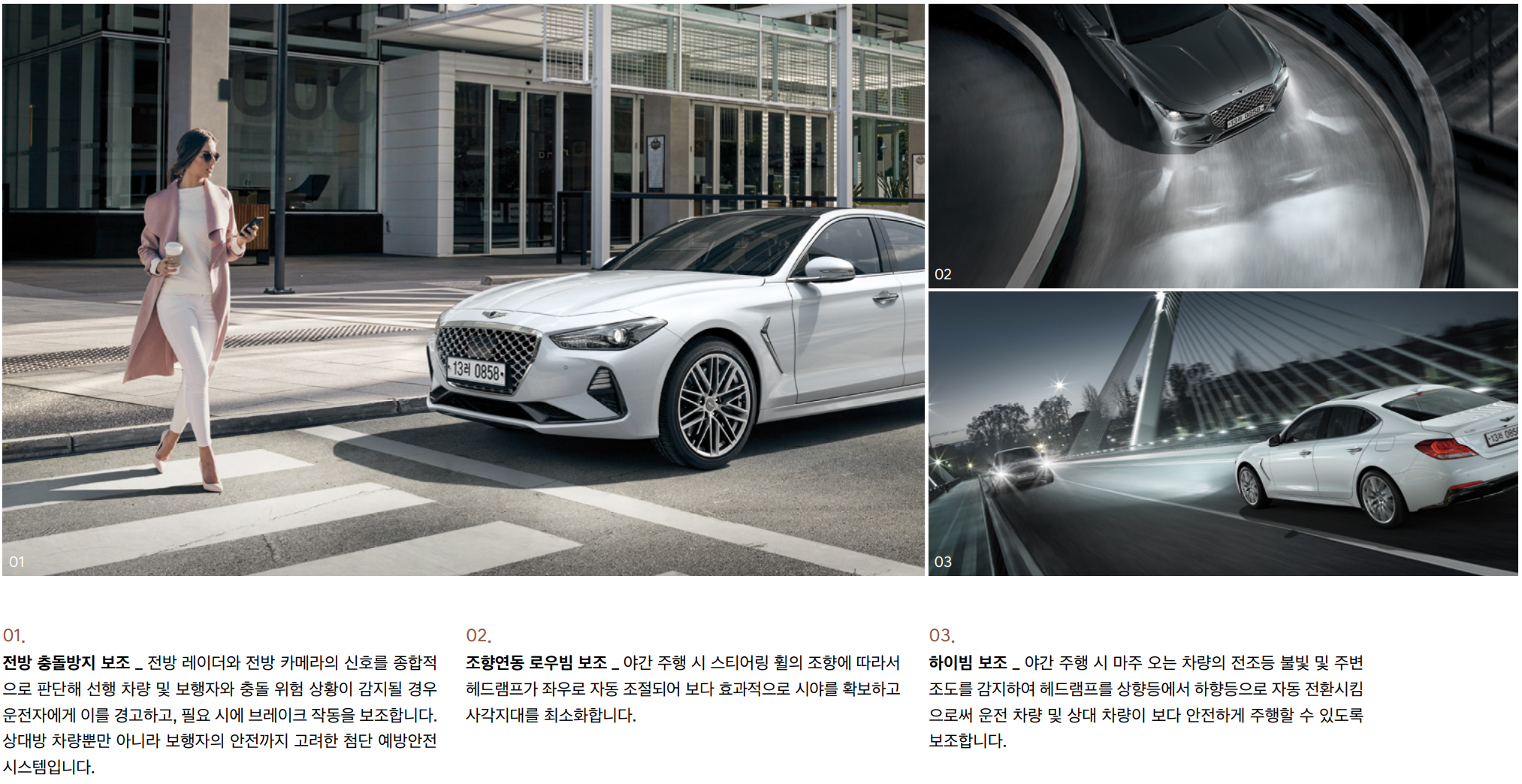 안전적인 면에서도 G80, GV80에 들어간 기술들이 G70에 탑재돼있을 만큼 뒤처지지 않죠! 좀 오버해서 말한다면 지금 나오는 G80, GV80과 비교를 해본다면 안전적인 면에서는 크게 다를 바가 없습니다.