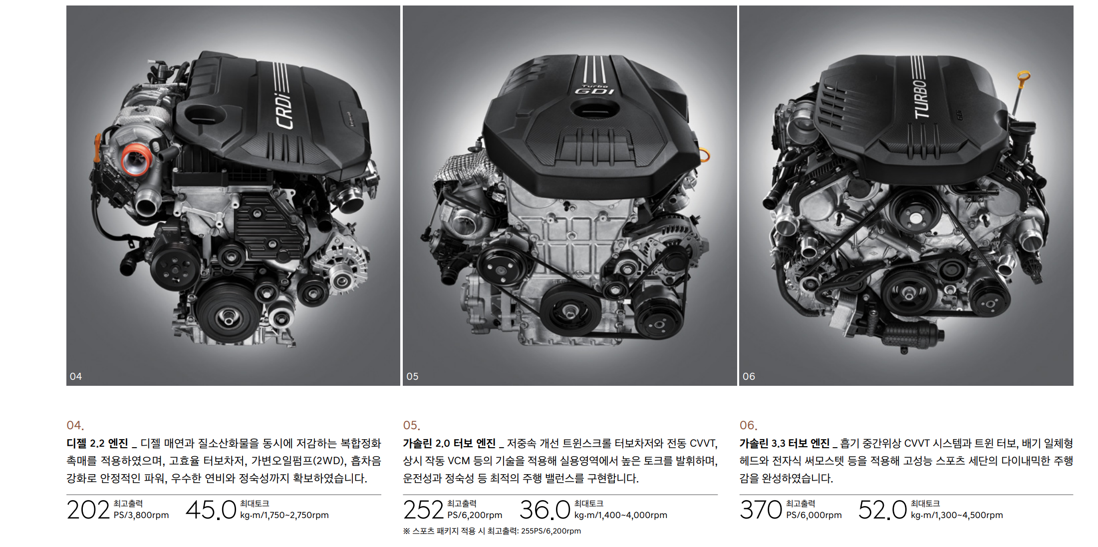 디젤과 가솔린 엔진 2 모델이 소개가 됩니다. 당연히 풀옵션은 가솔린 3.3T 엔진 기반이 될 테죠! 370마력의 괴물 엔진이 탑재된 G70입니다. 기아자동차의 K9의 엔진이랑 똑같다고 하는데요! 무게가 훨씬 가벼운 G70이 이 엔진을 장착하고 있습니다. 스포츠형 세단이 달리고 싶을 땐 어떠한 퍼포먼스를 내는지 보여줄 수 있겠죠!