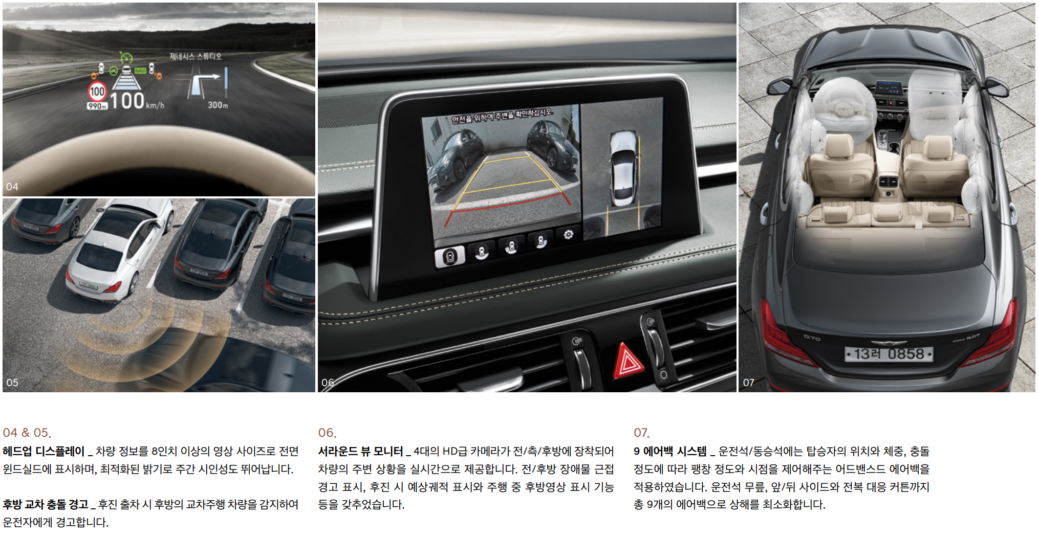 안전적인 면에서도 G80, GV80에 들어간 기술들이 G70에 탑재돼있을 만큼 뒤처지지 않죠! 좀 오버해서 말한다면 지금 나오는 G80, GV80과 비교를 해본다면 안전적인 면에서는 크게 다를 바가 없습니다.