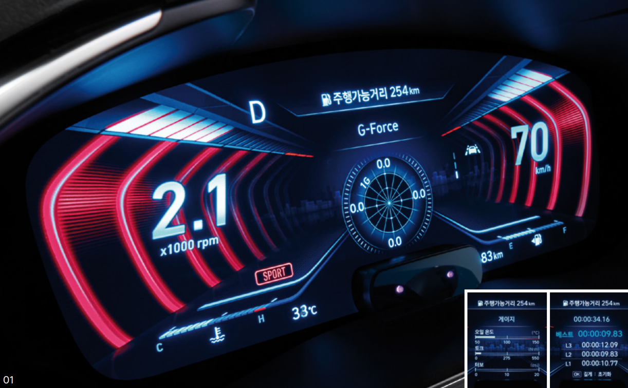 현재 G80, GV80에 들어간 3D클러스터가 G70 3.3T에 제일 먼저 들어갔던 것 모르셨죠? G80을 포스팅하면서 3D 클러스터를 소개했었는데요! 일반 주행에서 스포츠 주행모드로 변환할 때, 클러스터가 바뀐다고 하네요! 밑에 사진처럼! (비교를 하기 위해 2가지 사진을 올립니다.)