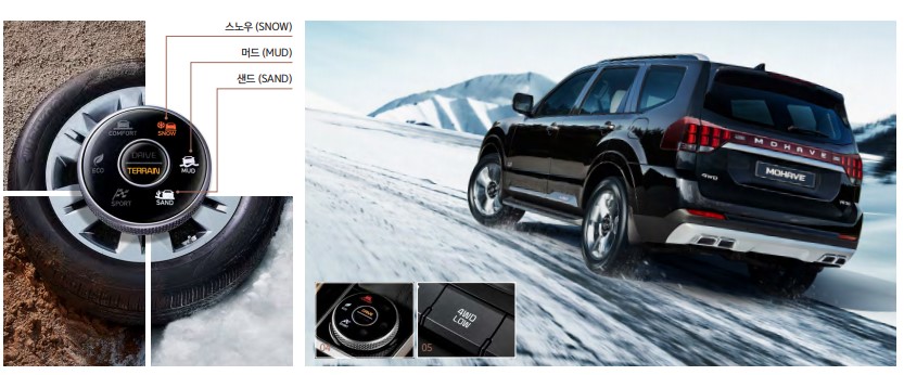 실내 디자인측에선 개인적으로는 상당히 맘에 드는데요! 모하비는 처음 나올 때 부터, 사막을 가로지르는 투어러의 모습을 많이 연상케 하며 광고화면이 나왔습니다. 인터넷에 돌아다니는 블로거들의 평에서도 사막의 사진이 많이있었죠! 사실 모하비는 한국에서도 공사판에서 많이 보이기도 했습니다. 투박한 느낌의 쌍용의 렉스턴과 맞먹는!! 하지만, 실내디자인에서는 고급스럽고, 각 라인의 선들도 섬세함을 드러냈습니다. 보조석 앞의 앰피언트 라이트도 투박한 느낌보다 따뜻한 감성을 불러일으키고 있죠!