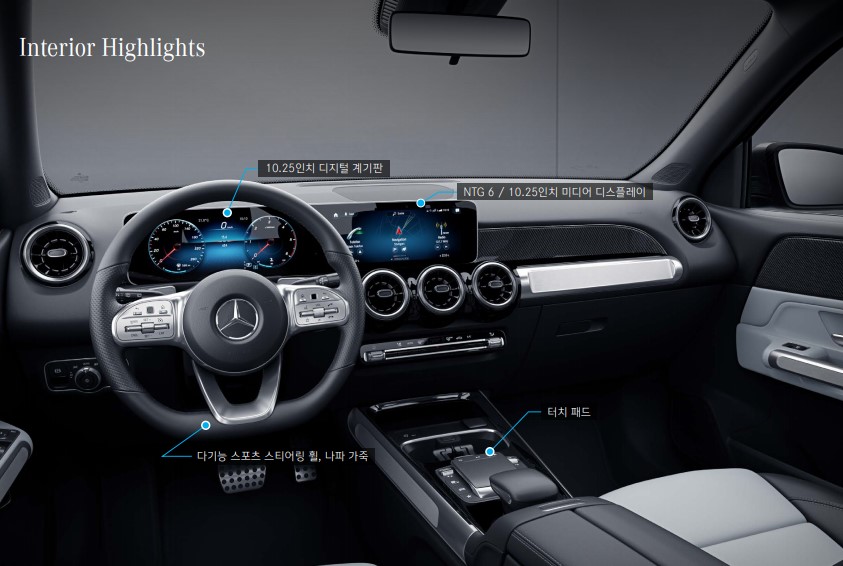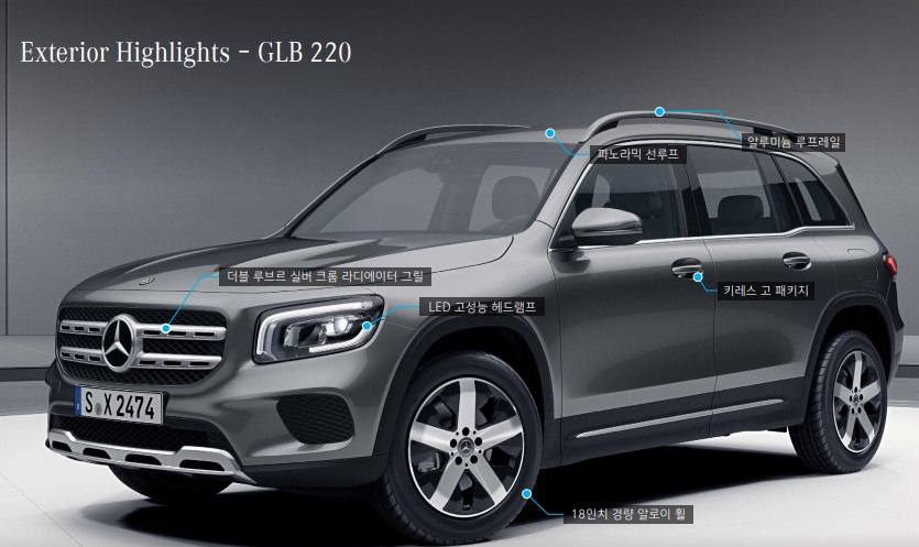 뉴스나 저널같은데서는 GLA와 GLB를 같이 묶어서 비교를 하긴 하는데요. 저는 이차를 보자마자 G바겐의 소형모델같다라고 생각이 들었습니다. 약간 박스형 SUV 같았어요. 후면을 보면 GLC와 GLE와 다르게 직각으로 떨어지는 느낌이거든요. 그리고 정원이 5인승인데, 카탈로그를 읽어보면 요청시 7인승도 가능하다고 하거든요. 그리고 트렁크공간을 수치적으로 비교하면 GLC 보다 크다는 점입니다. 실내를 봐도 벤츠의 고급스러운 디자인과 스포츠형 디테일이 조화롭게 이루어져 있는것도 느끼 실수 있습니다.