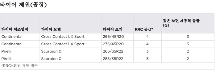 타이어는 위 사진에서 보듯 20인치 부터 22인치 까지 가능합니다.