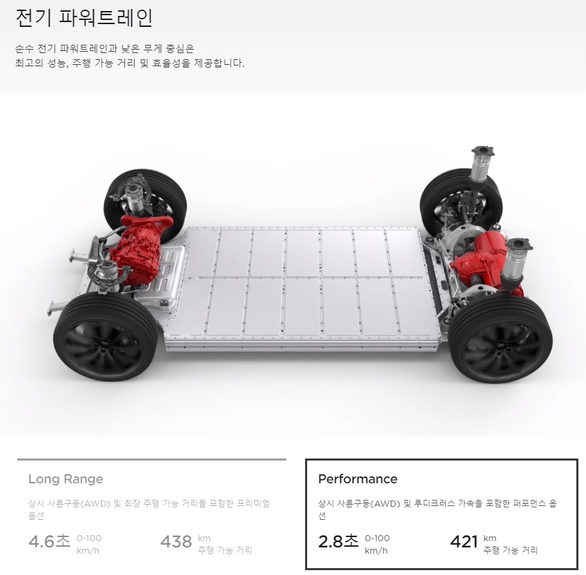 2개의 모델이 있습니다. 내연기관 차가 아니라서 엔진이라고 말하진 못하겠네요.