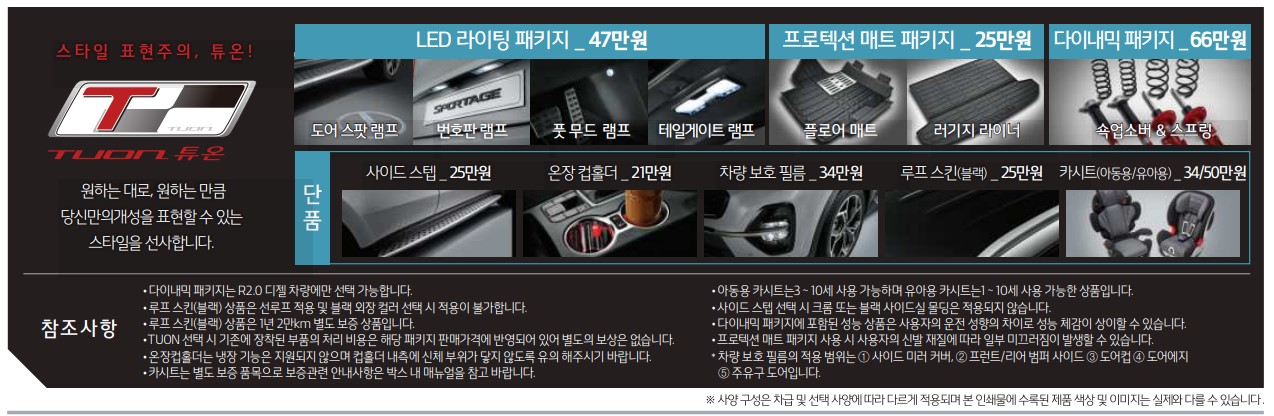 각 기본모델의 추가되는 옵션에 따라 가격이 달라집니다.
