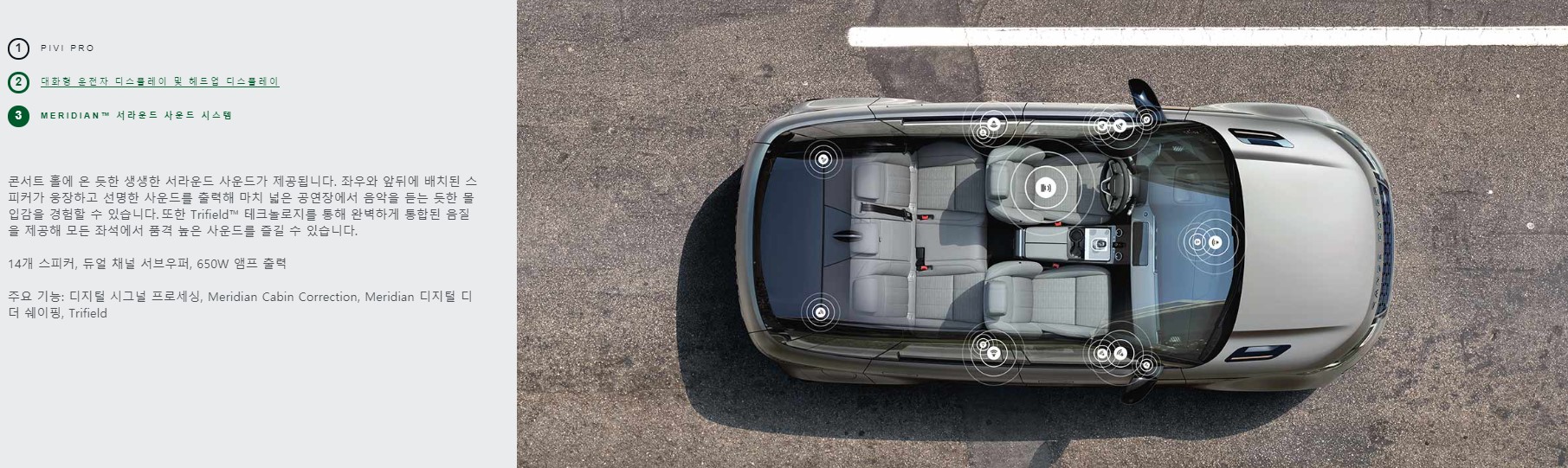 3D렌더링으로 차량의 주변이미지를 실제 차량이 움직이는 듯한 모습을 구현해냅니다.