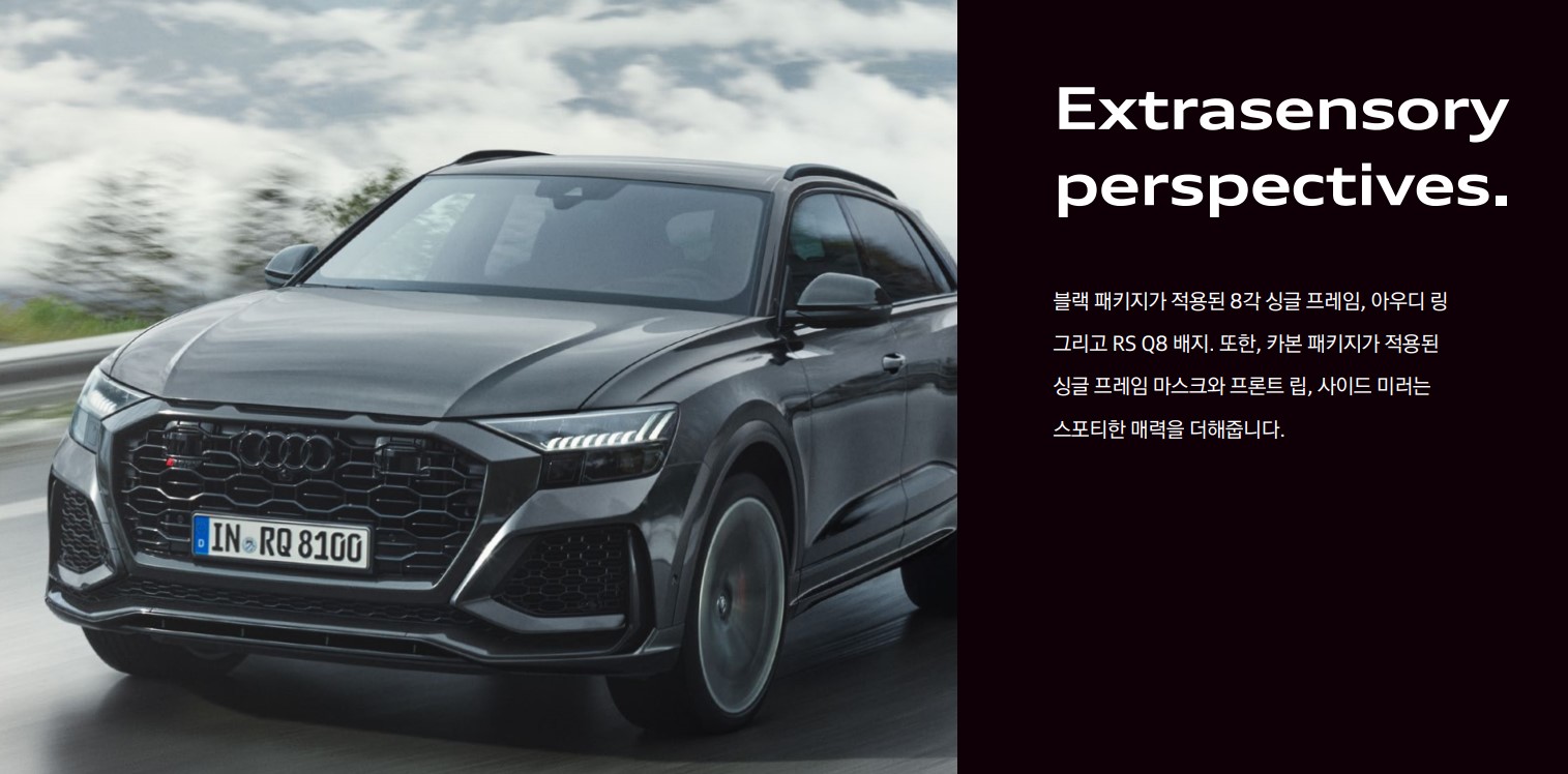벤츠에는 AMG, BMW에는 M이 있다면, 아우디에는 RS 가 있습니다. S가 고성능 모델로 아우디의 다른면모를 보여줬지만, RS를 선보이며 S의 더 고성능모델로 성능과 가격이 엄청난걸로 알려져 있습니다. 그중에서도 RS Q8은 아우디의 고성능중에서도 고성능에 버금가는 모델입니다. 가격이 무려 1억 7390만원으로 시작합니다.