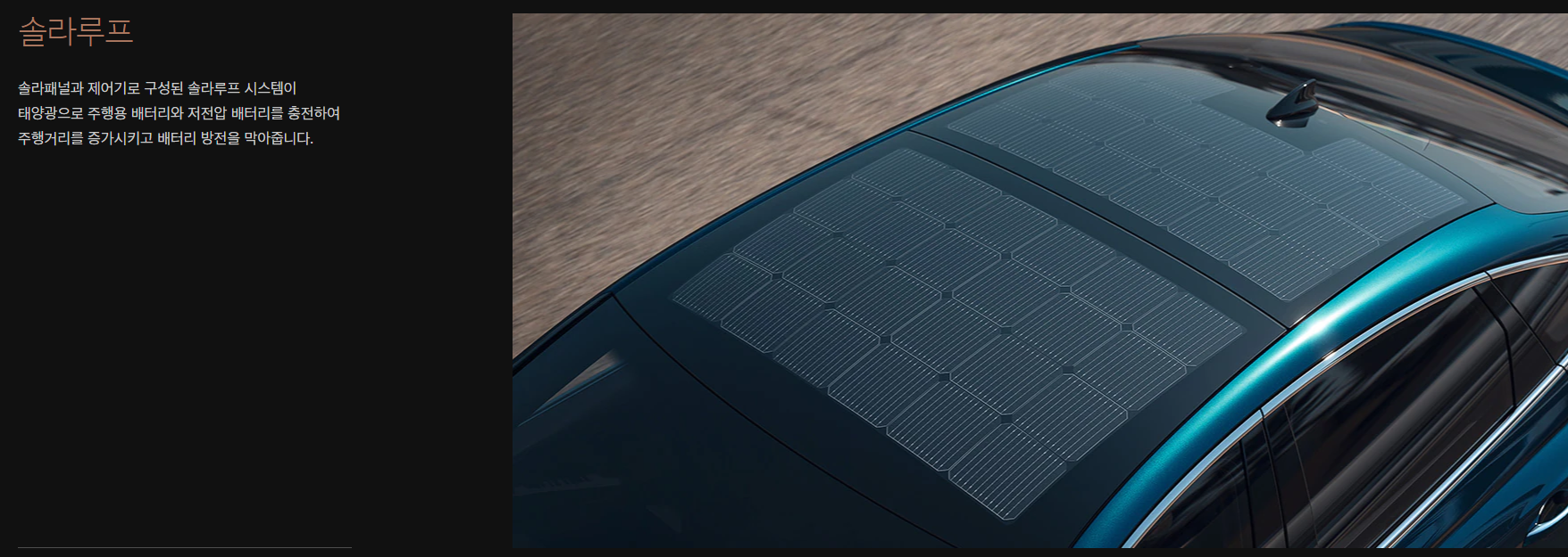 태양광을 이용해 배터리를 충전하는 솔라루프도 탑재합니다.