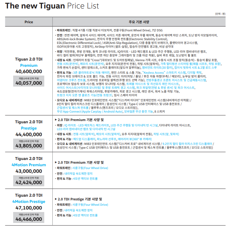 이번 티구안은 상품성을 강화하면서 가격도 최대 240만원을 낮춘것이 획기적입니다.