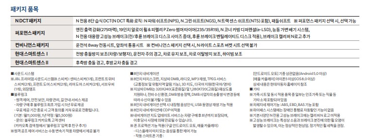 N Performance에서 수동 6단, 습식 DCT 8단을 선택할 수 있습니다.