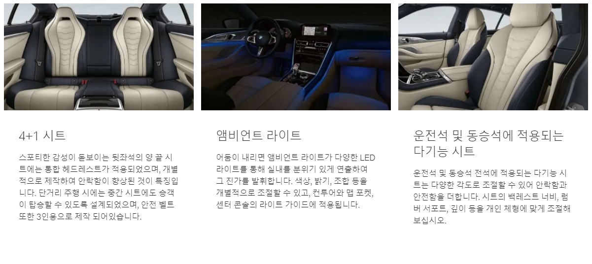 국내에는 그란쿠페와 M패키지 모델들이 먼저 들어왔고요. M8 컴페티션 모델들이 후속으로 들어왔습니다. M8은 2억 3550만원으로 알려져 있네요.