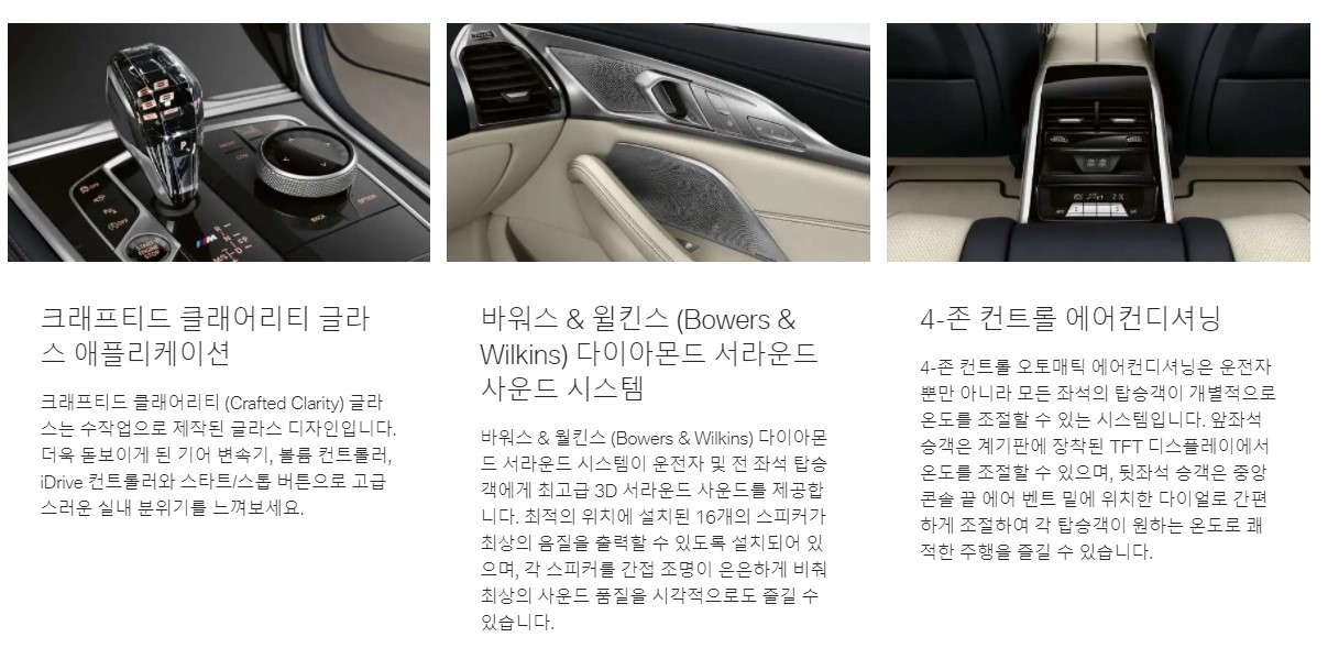 BMW의 최고 높은 숫자인만큼 고급스러운 실내디자인, 최첨단 편의 및 안전 기술 등의 요소들이 들어가있습니다.