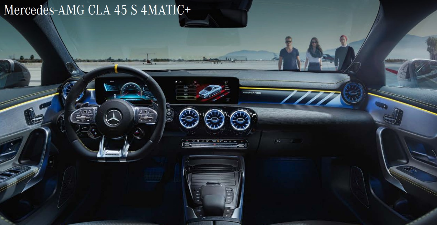 기본 모델인 CLA 250과의 주요 차이점은 4기통으로 421hp의 출력을 뿜어내는 AMG의 수제작 엔진과 뒷바퀴로 구동력을 100% 보낼 수 있어 드리프트모드를 지원하는 4MATIC+, AMG SPEEDSHIFT 8단 DCT 변속기, 자신의 서킷 주행 내용을 기록하는 AMG TRACK PACE라는 추가적인 인포기능이 있습니다.