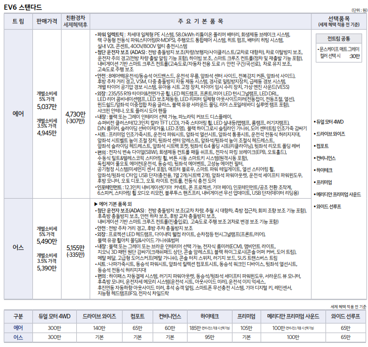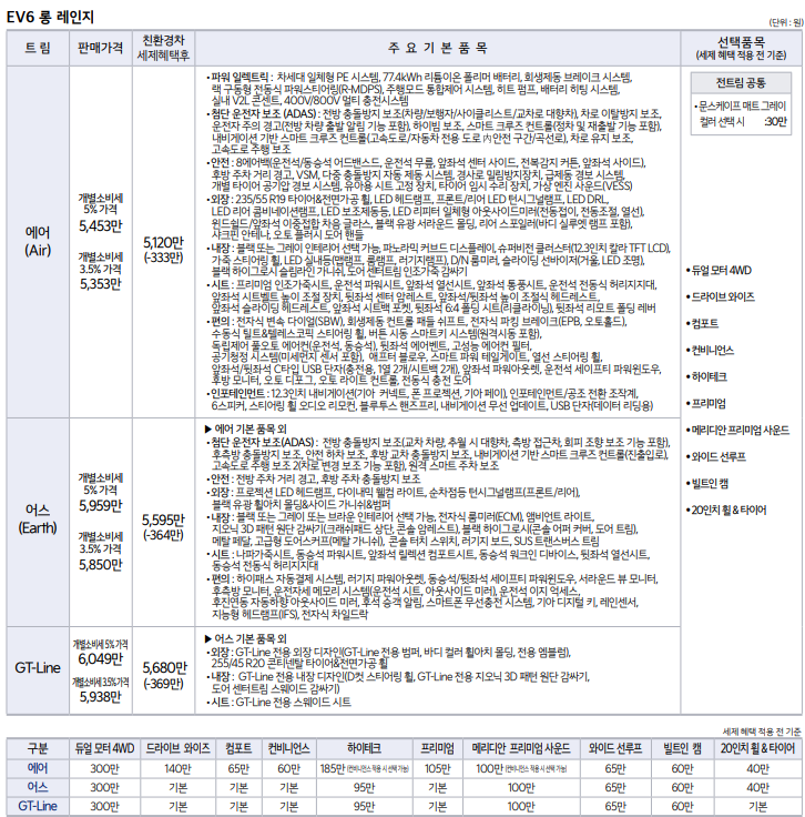 EV6는 스탠다드, 롱레인지, GT-라인으로 나뉘고요. GT-라인은 내년 하반기에 출시 된다고 합니다.
