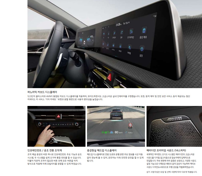 파노라믹 커브드 디스플레이를 적용하고, 내비게이션 화면 하단에 인포/공조 조작계를 장착합니다. 당연히 터치식의 패널도 적용하고요.