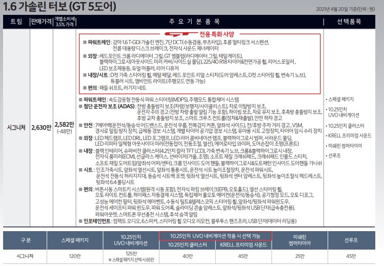 - 1.6 가솔린 터보 GT / 7단 DCT