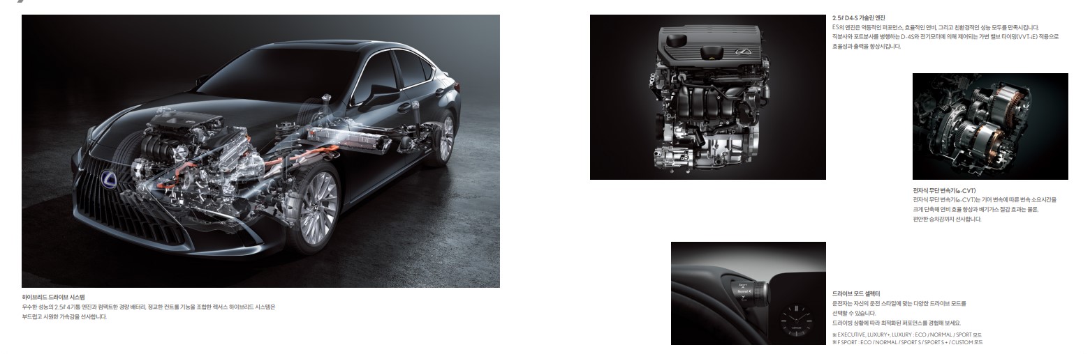 국내에 판매되는 ES 는 300h 를 붙여 하이브리드 모델만 정식 출시 되었습니다. 그 밖에 ES 250 AWD, ES 350 모델도 있습니다. 도요타 렉서스하면 하이브리드 알아주죠! 재작년 2019년에 일본 상품 불매운동전에는 할인이 거의 없을정도로, 잘나가는 모델이었습니다.