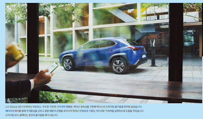 2019년부터 출시해 온 렉서스 UX가 22년형으로 전기차 모델인 300e 를 내놓았습니다.
