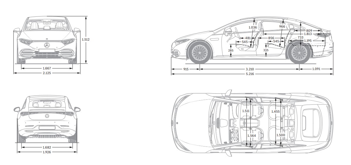 모델명을 보시면 아시겠지만, S라는 글자가 붙은 전기차 세단의 대형급입니다. 내연기과의 S클래스와 동급이라고 보시면 됩니다. 실제로 전장도 5200mm 정도 되서 S클래스 롱바디와 같은 크기에요.