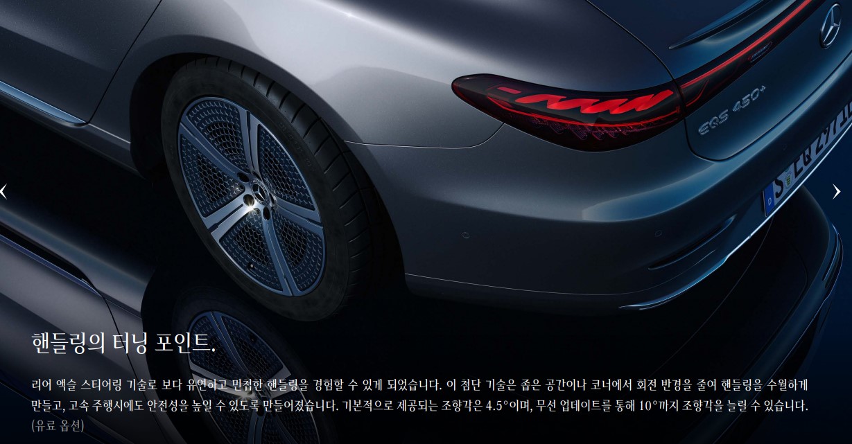 최근 논란이 되고 있는 벤츠의 옵션 구독 서비스 입니다. 후륜조향(리어 액슬 스티어링) 시스템입니다.